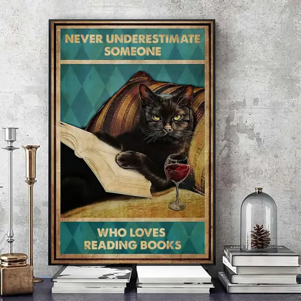 Love Reading Poster Girl Loves Reading Poster Never Underestimate Reading Books Poster Vintage Cat Art Print Cat Reading Lovers Gift