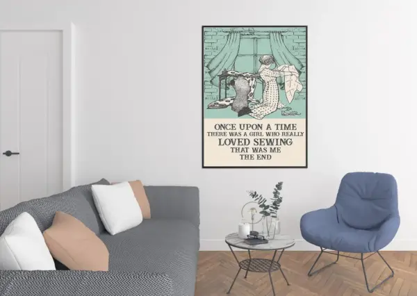 Love Sewing Poster Once Upon A Time There Was A Girl Who Really Loved Sewing Vintage Poster Sewing Vintage Poster Sewing Lover Gift Framed Matte Canvas