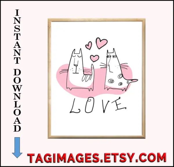 Love Story Printable Poster This Instant Boho Art Print Is A Great Gift For The Cat Lover Or Nursery Wall Art Decor