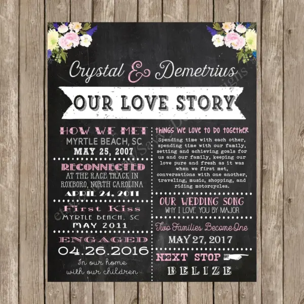 Love Story Printable Poster Watercolor Blue And Blush Chalkboard Love Story Blue Blush Wedding Diy Printable Our Love Story