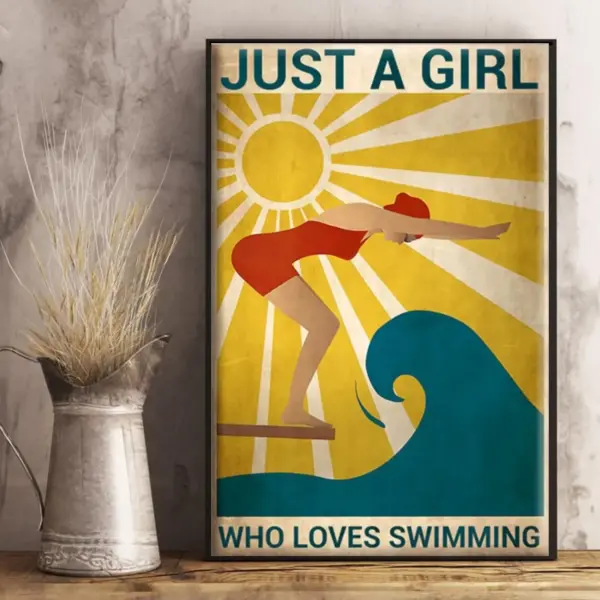Love Swimming Poster Swimming Poster Just A Girl Who Loves Swimming Poster Summer Vacation Relax Time Vintage Poster No Frame