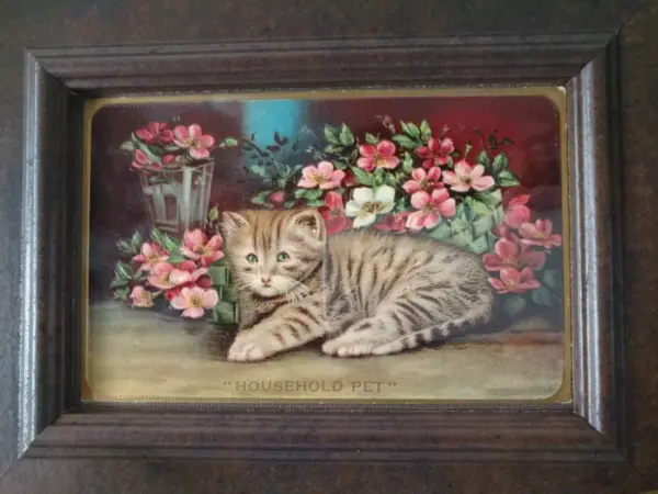 Lovely Cat Wall Decor Framed Antique Postcard Gift For Cat Lover