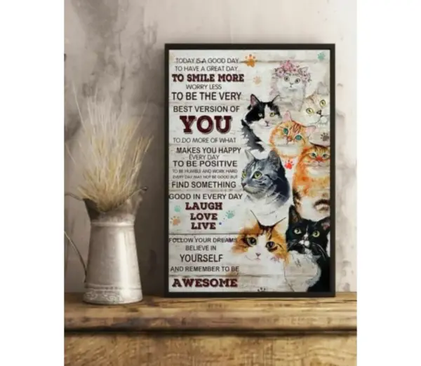 Lovely Cats Poster To Smile More Art Laugh Love Live Poster Vintage Cats Print Cat Lovers Gift Funny Cats Wall Art Love Cats Poster