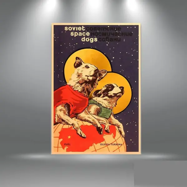 Lovely Soviet Space Dogs Vintage Poster Home Decor Poster