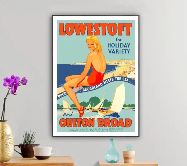 Lowestoft For Holiday Variety And Oulton Broad Vintage Travel Poster Poster Paper Sticker Or Canvas Print Gift Idea