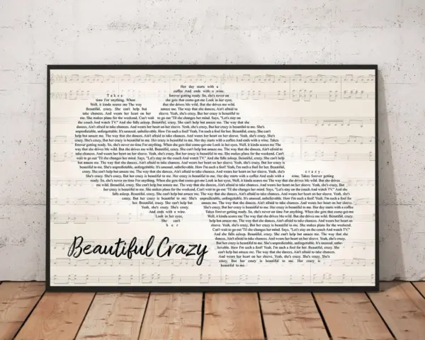 Luke Combs Beautiful Crazy Lyrics Poster Best Gift Ever Song Lyrics Poster Song Lyrics Print Lyrics Wall Art Music Poster 0709