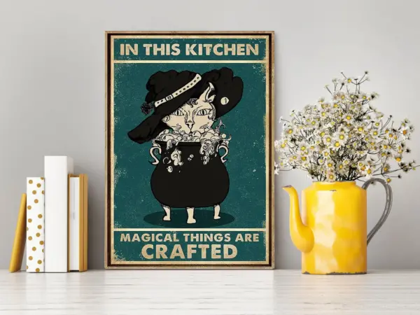 Magical Things Witch Cat Vertical Poster Cat Vertical Art Print Black Cat Art Wall Sewing Lovers Poster