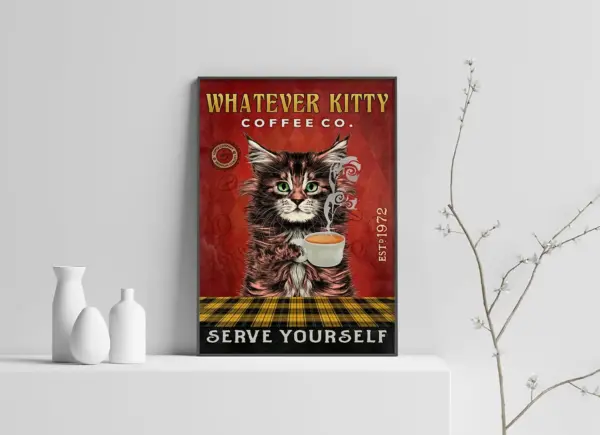 Maine Coon Whatever Kitty Coffee Co Serve Yourself Poster Funny Cat Poster Serve Yourself Poster Vintage Style Poster No Frame Cat Poster