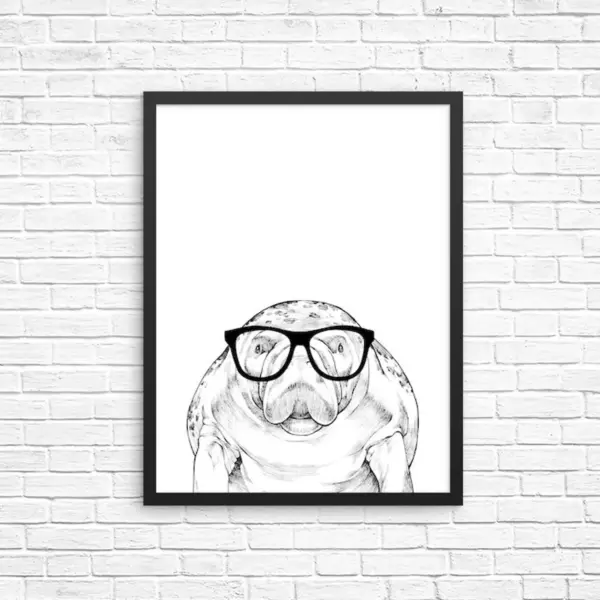 Manatee Wall Art Sea Animal Portrait Print Beach House Sign Nautical Wall Decor Marine Nursery Decor Poster Boy Girl Kids Room Decor