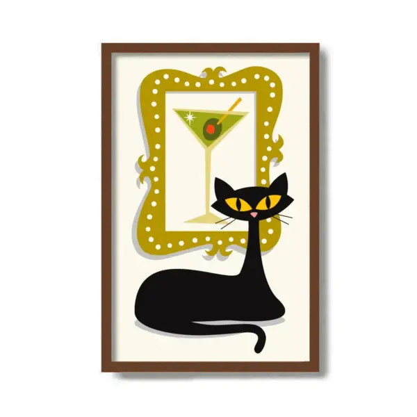 Martini Art Mid Century Modern Art Print Cat Lover Gift Gin Gifts Black Cat Art Print Cocktail Poster Bartender Gifts Martini Glasses
