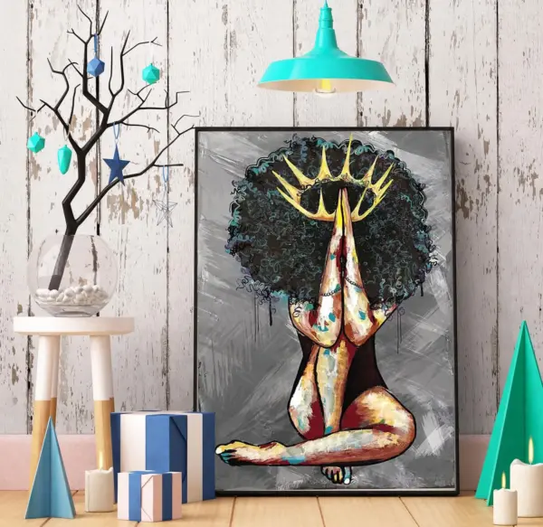 Melanin Queen Praying Black Girl Poster Vintage Poster Vintage Art Print Vintage Hippie Poster Black Girl Poster