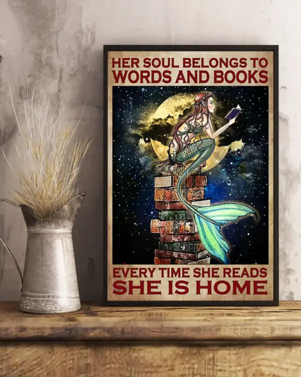 Mermaid Her Soul Belongs To Words And Books Vertical Poster Girl Love Books Vintage Wall Art Book Lover Poster Mermaid Poster No Frame