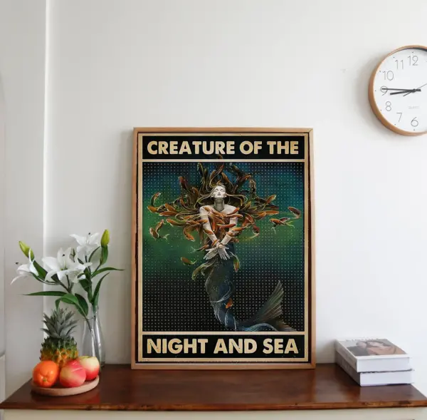 Mermaid Painting Mermaid Poster Mermaid Art Best Gift For Mermaid Lover Mermaid Wall Decor Creature Of The Night And Sea Poster