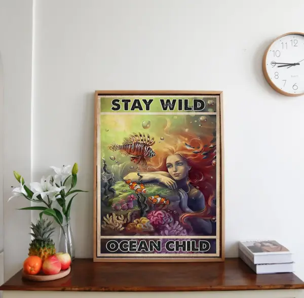 Mermaid Painting Mermaid Poster Mermaid Art Best Gift For Mermaid Lover Mermaid Wall Decor Poster Stay Wild Ocean Child Poster