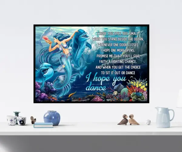 Mermaid Poster I Hope You Dance Poster Mermaid Print Mermaid Dancing With Dolphins Poster Print Wall Art Ocean Poster Art Print 2107