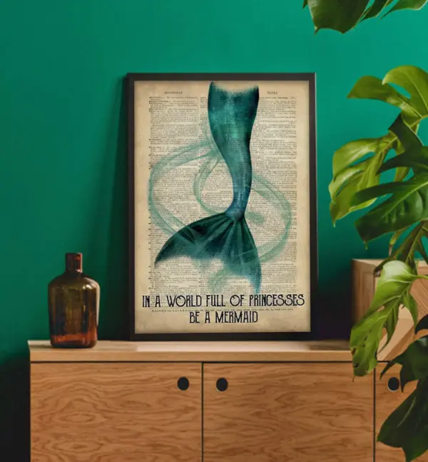 Mermaid Poster In A World Full Of Princess Be A Mermaid Love Mermaid Poster Dictionary Vintage Poster Mermaid Lover Gift Ideas Huh 1101M Framed Matte Canvas