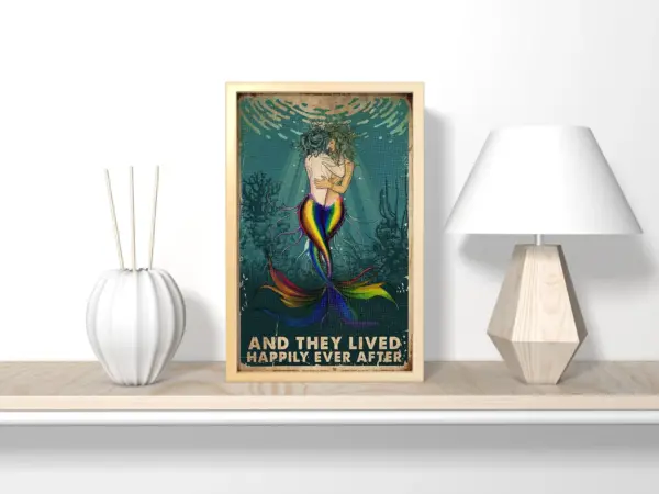 Mermaid Poster Lgbt Mermaid Poster And They Lived Happily Ever After Vintage Poster Lgbt Couple Poster Lgbt Love Pride Poster Gift