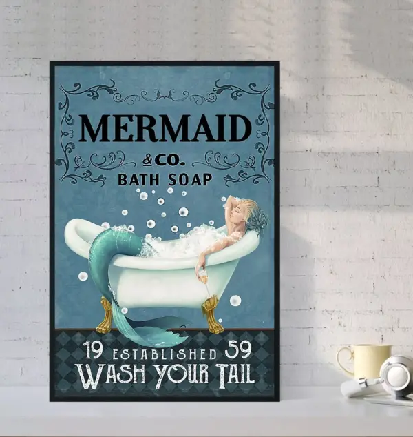 Mermaid Poster Mermaid Co Bath Soap Wash Your Tail Poster Ocean Lovers Poster Mermaid Lovers Vintage Poster Wall Hanging 2412