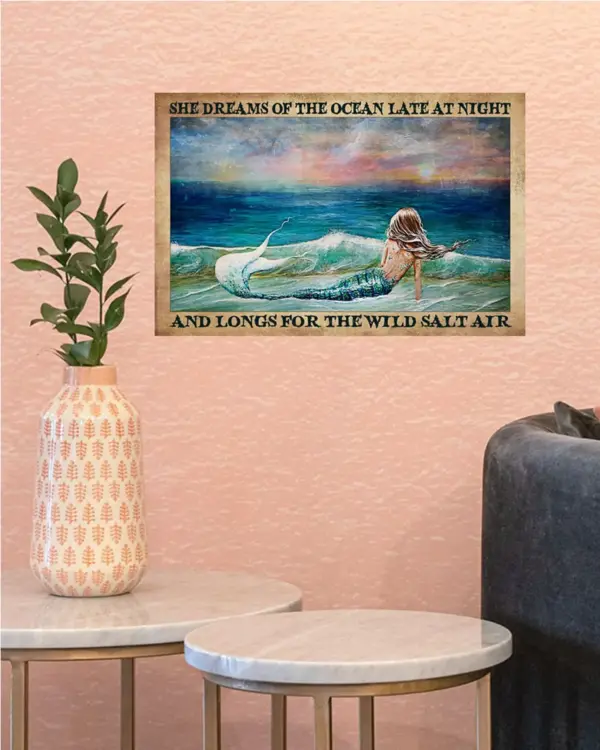 Mermaid She Dream Of The Ocean Horizontal Poster Mermaid Lover Poster Mermaid Girl Poster Vintage Poster No Framed Poster