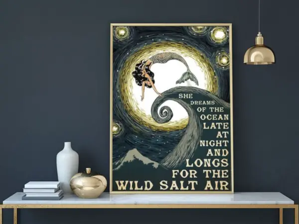 Mermaid She Dreams Of The Ocean Late At Night Poster Mermaid Poster Mermaid Lovers Poster Gift Print Wall Art