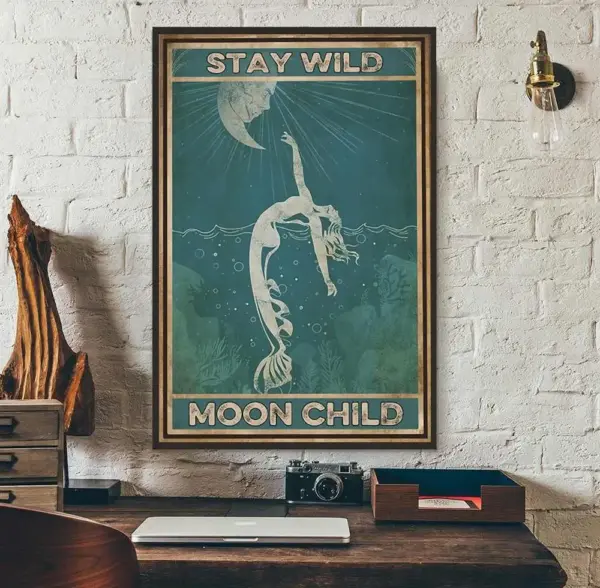 Mermaid Swimming Stay Wild Moon Child Vintage Poster