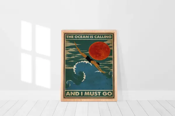 Mermaid Vintage Poster Love Mermaid Poster Love Ocean Poster Love Sea Print The Ocean Is Calling And I Must Go Vintage Poster Framed Matte Canvas