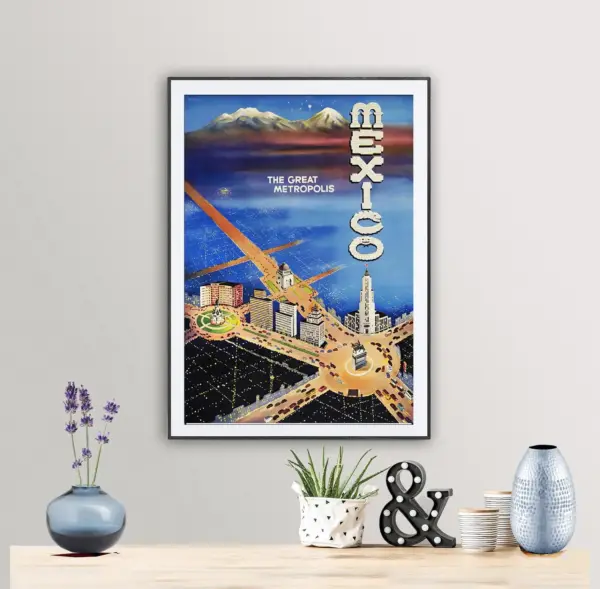 Mexico The Great Metropolis Vintage Travel Poster Poster Paper Sticker Or Canvas Print Gift Idea