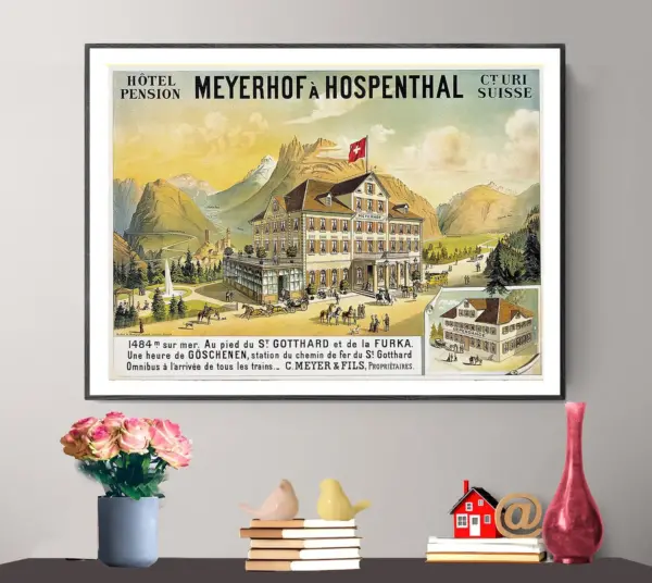 Meyerhof A Hospenthal Suisse Vintage Travel Poster Poster Paper Sticker Or Canvas Print Gift Idea
