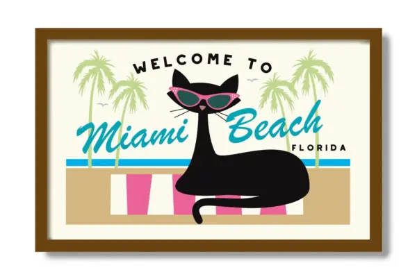Miami Beach Poster Beach Decor Mid Century Modern Art Florida Decor Gay Art Print Black Cat Art Print Cat Lover Gift Beach House Gift