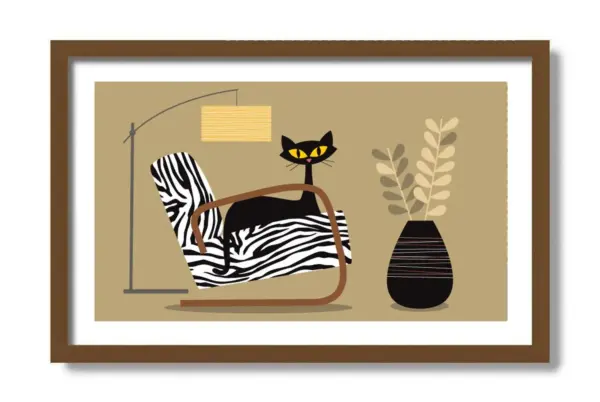 Mid Century Modern Art Black Cat Art Print African Decor Cat Poster Cat Lover Gift Tank Chair Cat Gifts For Men Zebra Pattern