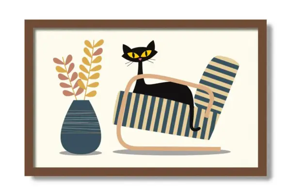 Mid Century Modern Art Black Cat Art Print Cat Poster Cat Lover Gift Tank Chair Cat Gifts For Men Plant Lover