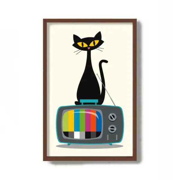 Mid-Century Modern Black Cat Art Print - Retro TV Poster