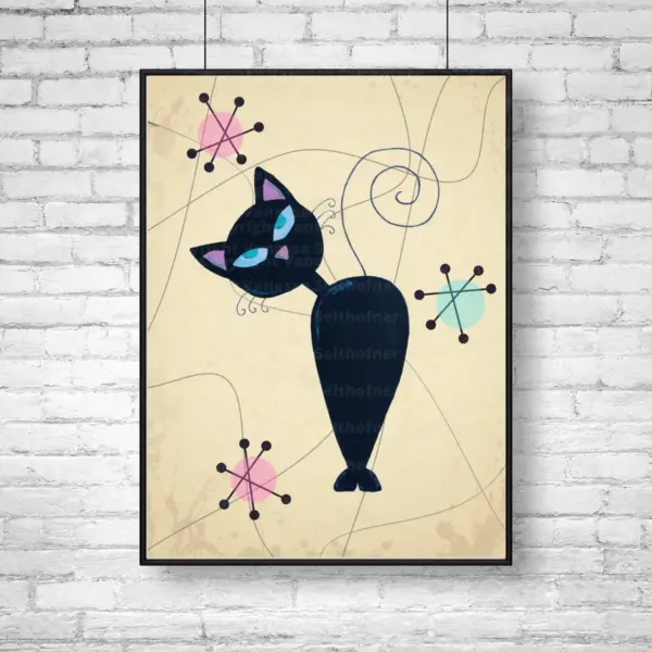 Mid Century Modern Art Giclee Print Cat Lover Gift Cat Art Poster Wall Decor Cat Print Unique Gift Retro Art Print Atomic Cat Art Print