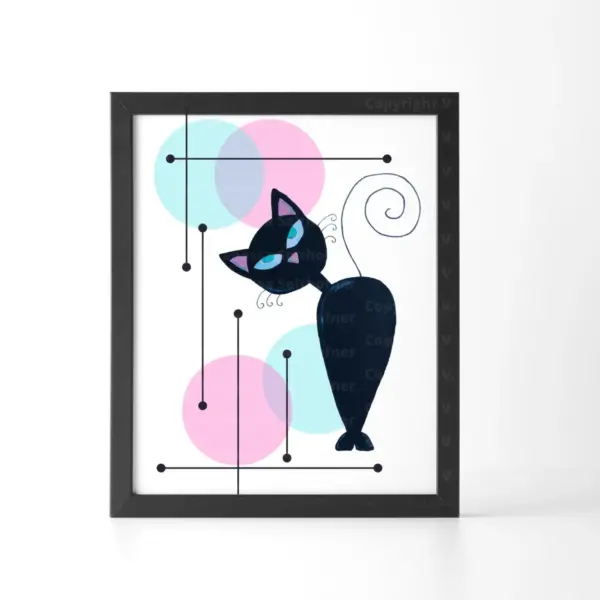 Mid Century Modern Art Giclee Print Cat Lover Gift Cat Art Poster Wall Decor Cat Print Unique Gift Retro Art Print Black Cat Art Print