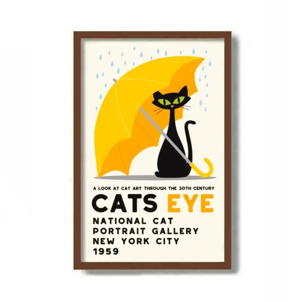Mid Century Modern Art Print Black Cat Lover Gift Minimalist Wall Art Black Cat Art Umbrella Wall Art