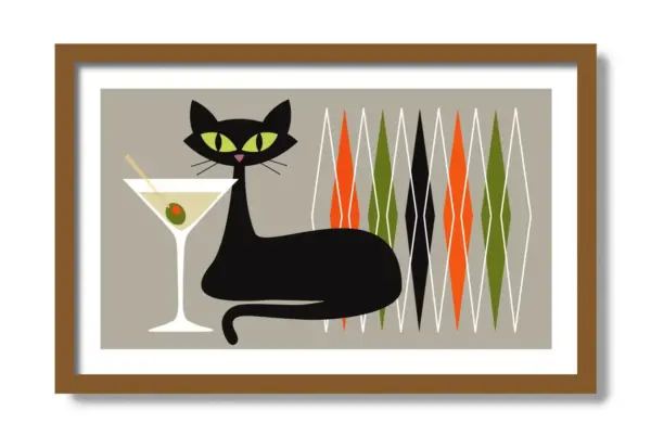 Mid Century Modern Art Print Cat Lover Gift Gin Gifts Black Cat Art Print Martini Art Cocktail Poster Bartender Gifts Martini Glasses