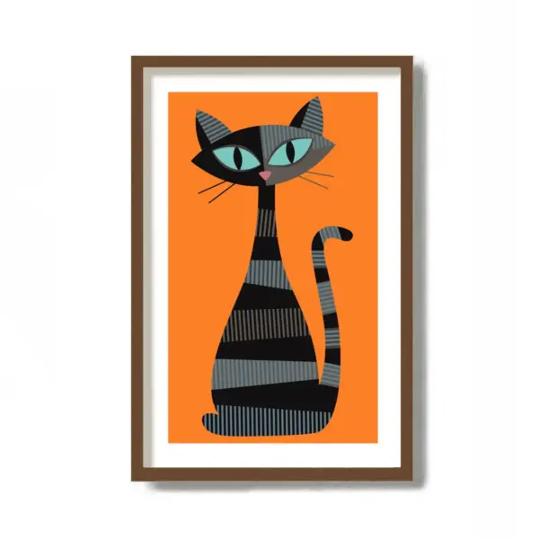 Mid Century Modern Cat Art Black Cat Wall Art Decor Print Tabby Cat Gift Idea Cat Lover Cat Mom Custom Cat Portrait Retro Tiger Cat