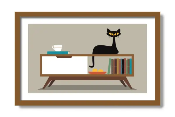 Mid Century Modern Coffee Table Cat Lover Gift Black Cat Art Print Coffee Table Books Cat Gift Idea Veterinarian Gift Cat Poster