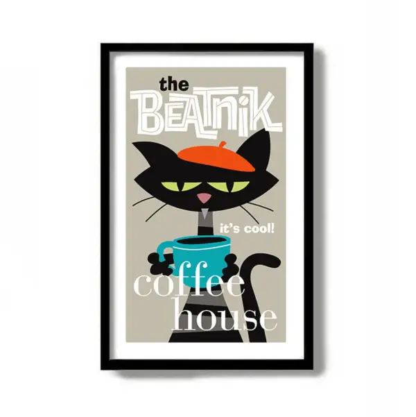 Mid Century Modern Wall Art Beatnik Art Print Black Cat Art Print Coffee Cup Pantry Sign Coffee Lover Cat Lover Gift Kitchen Art