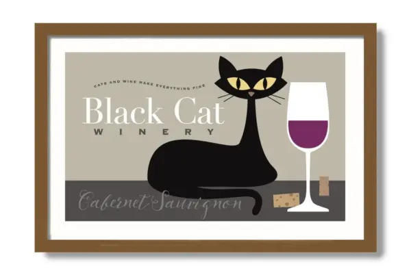Mid Century Modern Wall Art Black Cat Art Print Wine Lover Gift Cat Lover Gift Wine Gift For Women Cabernet Sauvignon Wine Glasses