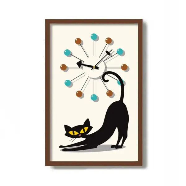 Mid Century Modern Wall Art Cat Lover Gift Black Cat Art Print Retro Ball Clock Danish Modern Cat Mom Gift