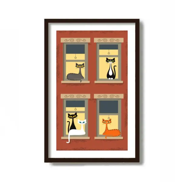 Mid Century Modern Wall Art Cat Lover Gift Idea Cat Art Decor White Cat Wall Art Print Black Cat Gift Mcm Apartment Building Grey Cat