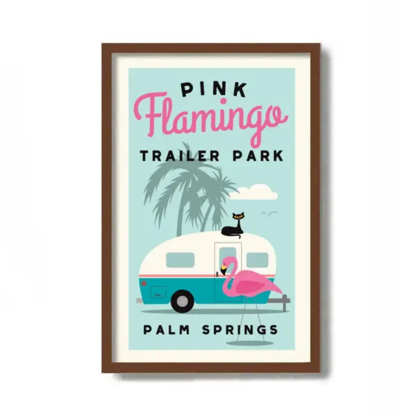 Mid Century Modern Wall Art Pink Flamingo Decor Rv Camper Trailer Park Black Cat Art Print Palm Springs Poster Cat Lover Gift
