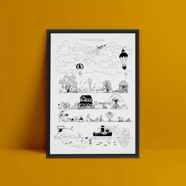 Miniature Cats Dogs Town Illustrated Art Print Pet Lover Unique Gift Personalised Poster