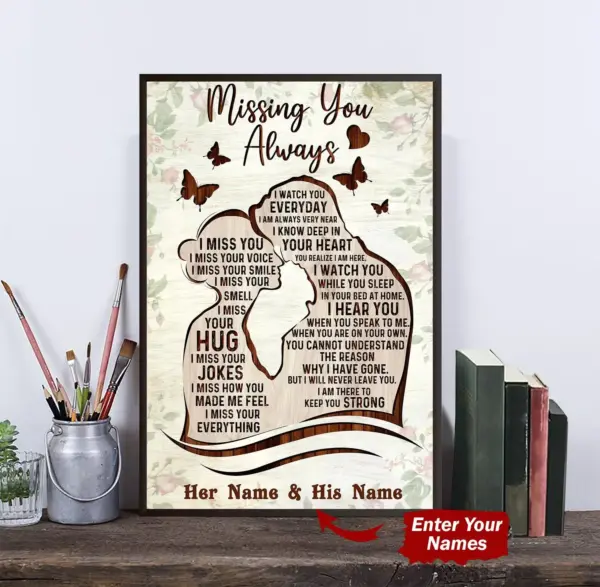 Missing You Always I Watch You Every Day Vertical Poster Personalized Couple Poster Custom Wedding Gift Unframe Paper Poster 2107