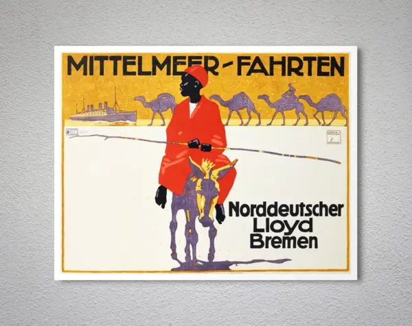 Mittelmeer Fahrten Norddeutscher Lloyd Bremen Vintage Travel Poster By Ludwig Hohlwein Poster Paper Sticker Or Canvas Print Gift Idea