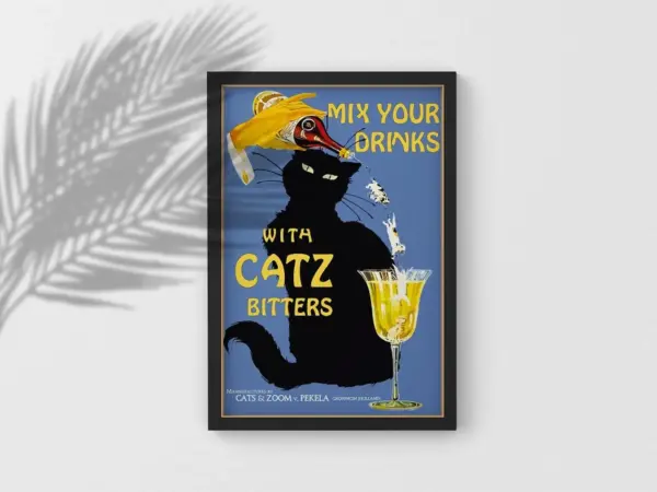 Mix Your Drinks With Cat Bitters Poster Black Cat Print Cat And Wine Art Cat Lover Gift Drinking Wine Poster Bar Decor Signs For Home