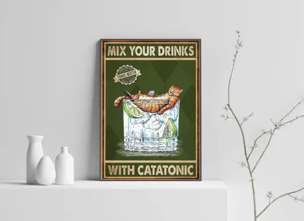 Mix Your Drinks With Cat Bitters Poster Funny Cat Poster Canvas Art Cat Lover Gift Kitty Print Drinking Wine Poster Signs For Home