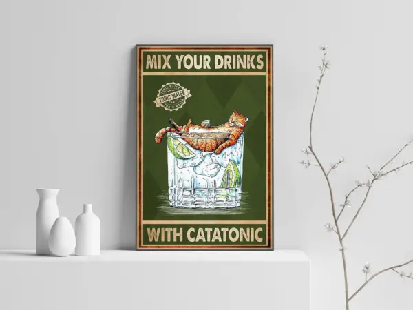 Mix Your Drinks With Catatonic Poster Black Cat Poster Drinking Wine Poster Cat And Wine Poster Printable Wall Art Signs For Home