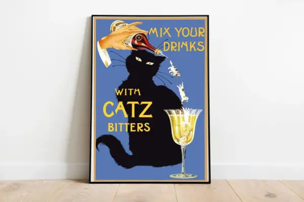 Mix Your Drinks With Catz Bitters Poster Funny Cat Print Cat Lover Gift Drink Poster Black Cat Poster Alcohol Advertising Poster